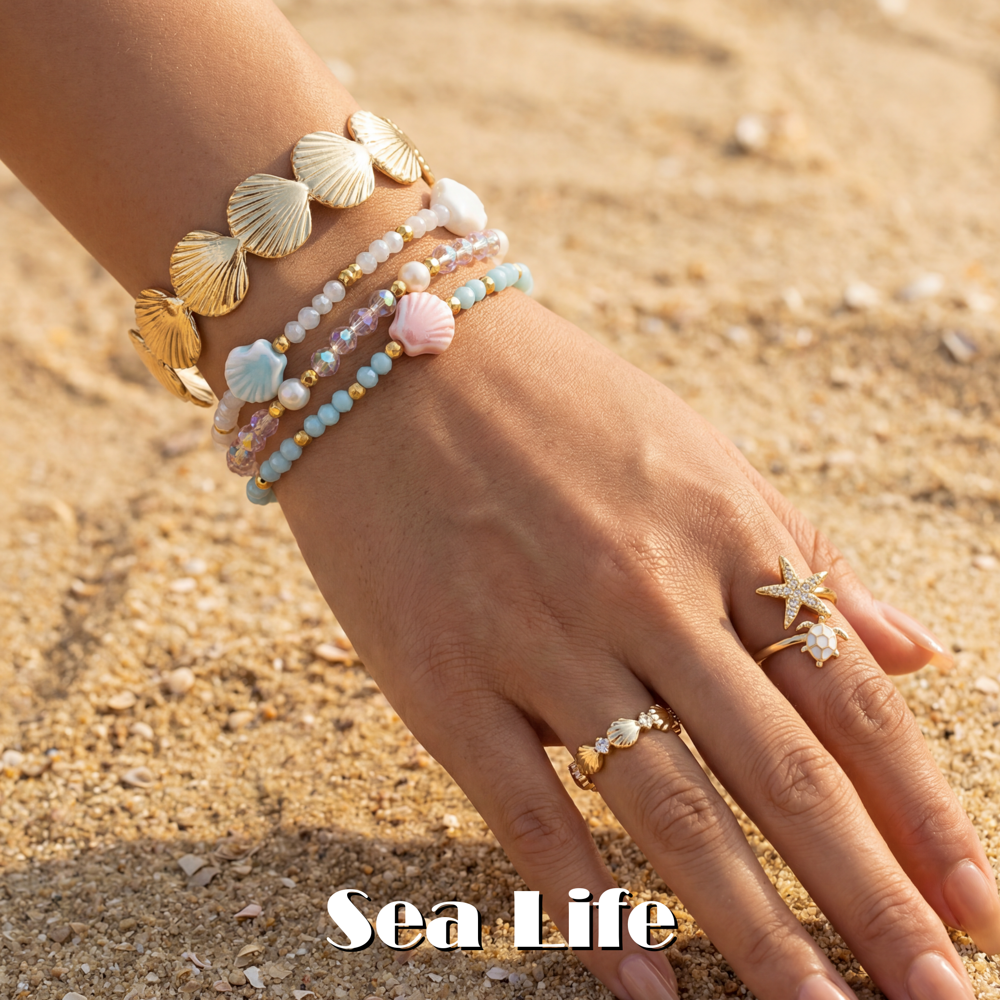 Gold Dipped Sea Life Tide Pool Pendant Necklace