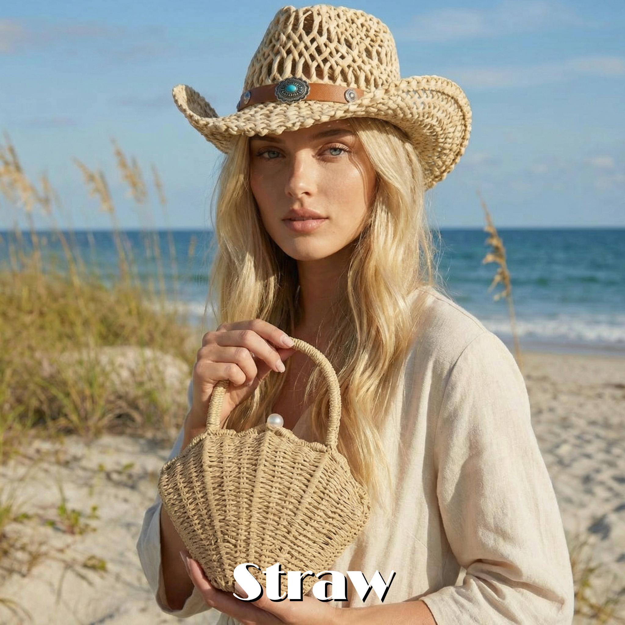 Adjustable Chin Strap Straw Braid Cowboy Hat