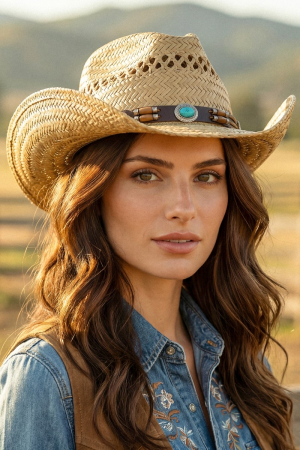 Braided Beads Straw Cowboy Hat