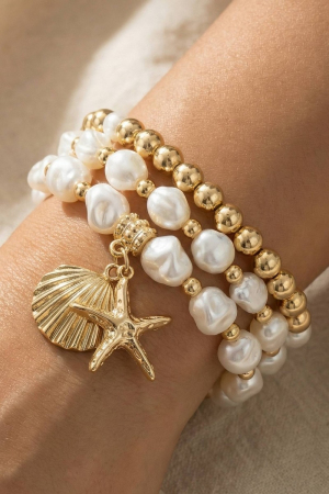Mixed Pearl And Metallic Beaded Elastic Bracelet