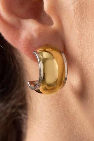 Two Tone Dome Shield Hoop Earrings