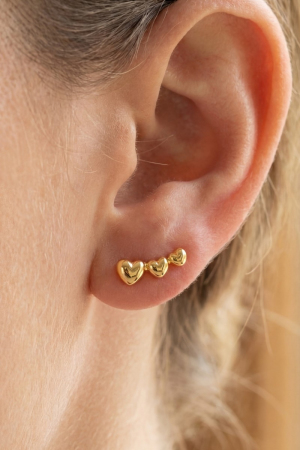Gold Dipped Triple Heart Bar Stud Earrings