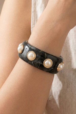 Black Marble Resin Pearl Dome Studded Bangle Bracelet