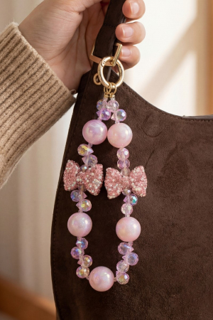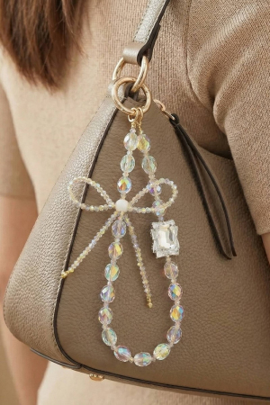 Crystal Beads With Ribbon Bow Bag Charm