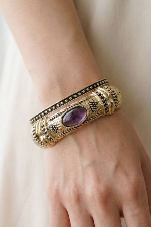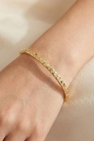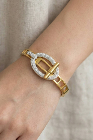 Stainless Steel Pave Oval Buckle Hinged Bangle Bracelet
