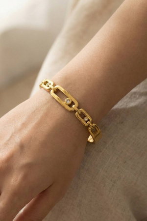 Stainless Steel Chain Link Crystal Accent Hinged Bangle Bracelet