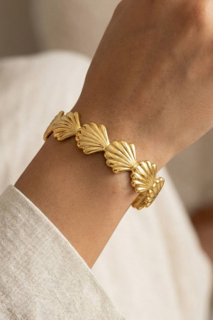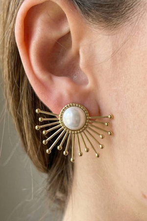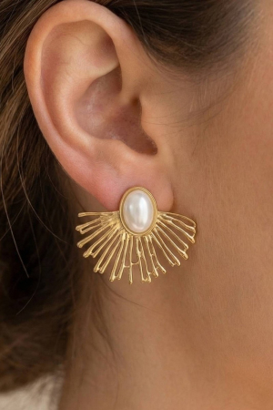 Gold Dipped Pearl Center Fan Ray Stud Earrings