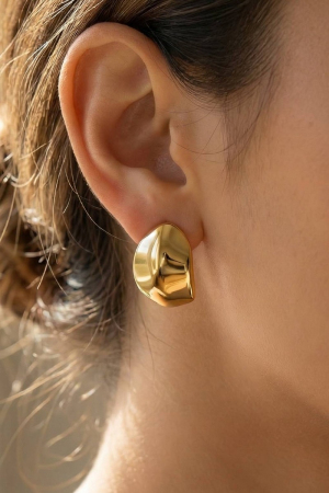 Gold Dipped Sculpted Swirl Detail Dome Stud Earrings