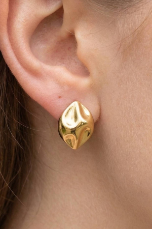 Gold Dipped Hammered Diamond Shape Stud Earrings