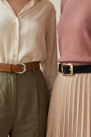 Assorted Two Piece Oval Buckle Vegan Leather Belt Set