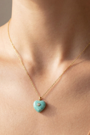 Stainless Steel Stone Heart Crystal Accent Pendant Necklace