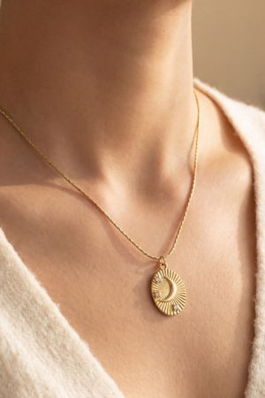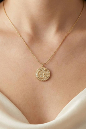 Celestial Moon And Sun Crystal Coin Pendant Necklace