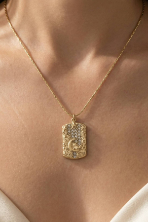 Celestial Moon And Stars Crystal Dog Tag Pendant Necklace