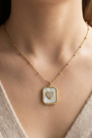 Mother Of Pearl Crystal Heart Rectangle Pendant Necklace