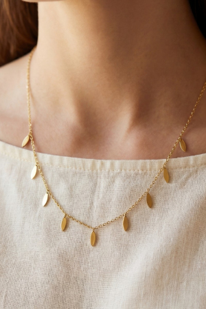 Gold Dipped Mini Heart Station Charms Chain Necklace