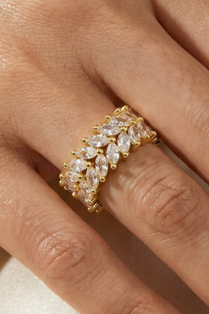 Gold Dipped Cz Wavy Flower Studded Ring