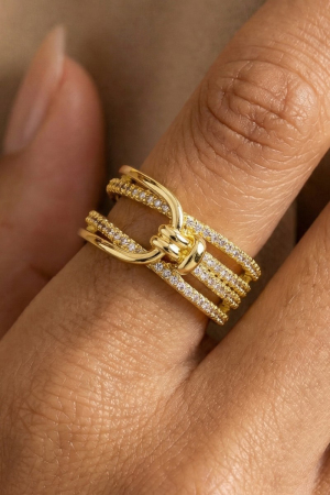 Gold Dipped Cz Studded Ring