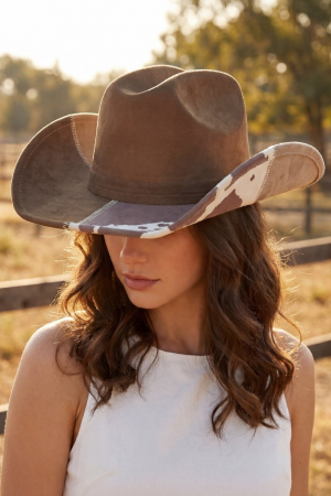 Two Tone Straw Braided Patches Cowboy Hat
