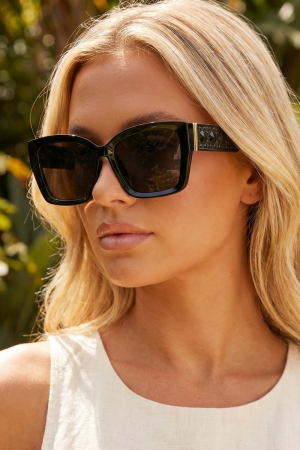 Wide Angular Geometric Sunglasses With Gold Bar Temple