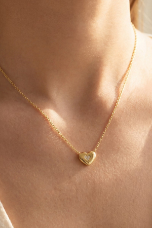 Gold Dipped Cz Studded Heart Pendant Necklace