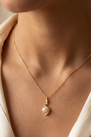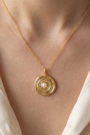 Gold Dipped Pearl Stud Ripple Coin Pendant Necklace