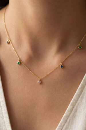 Gold Dipped Mini Station Cz Charms Chain Necklace