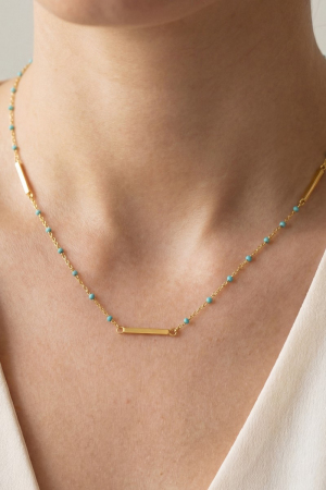Gold Dipped Bar Pendant Enamel Accent Necklace