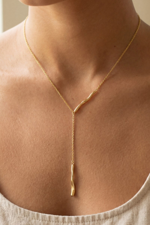 Gold Dipped Double Irregular Bar Y Chain Necklace