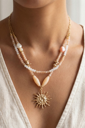 Layered Crystal & Pearl Beaded Sunburst Pendant Necklace