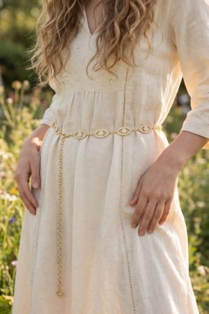 Gold Cz Rhinestone Butterfly Link Chain Belt