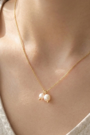 Gold Dipped Pearl Stud Ripple Coin Pendant Necklace