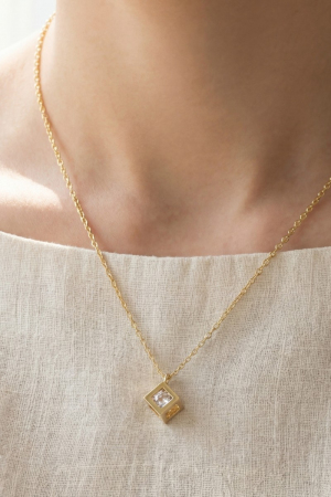 Gold Dipped Cz Pendant Enamel Accent Necklace