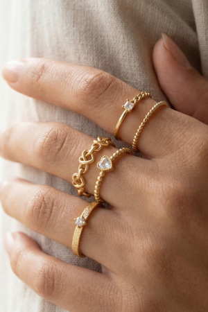 Ribbed Gold Bead And Pearl Stretch Bracelet Set