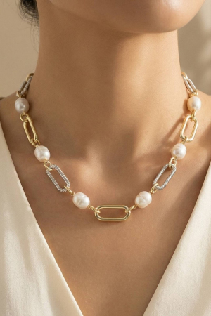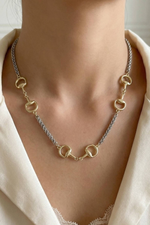 Two-Tone Horsebit Station Wheat Chain Necklace