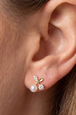 18K Gold Dipped Pearl Cherry Stud Earrings