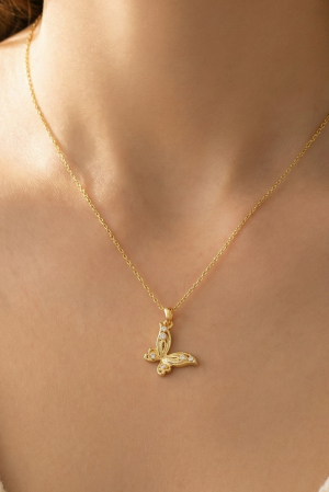 14K Gold Dipped Cz Butterfly Pendant Necklace