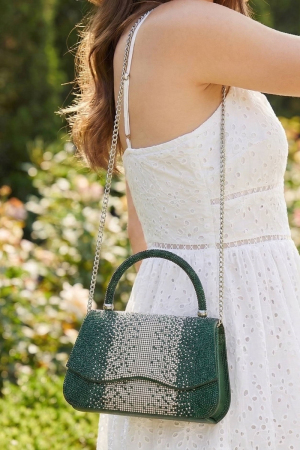 Rhinestone Satin Top Handle Clutch Satchel