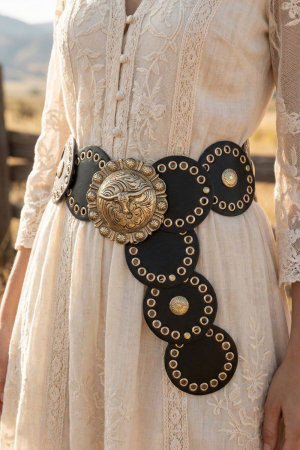 Gold Circle Grommet Concho Wide Belt