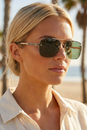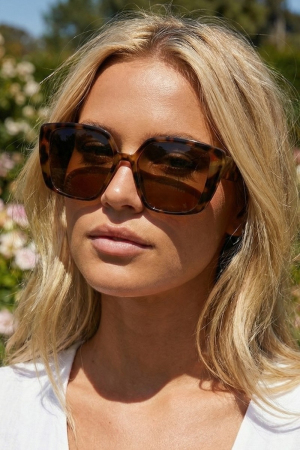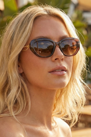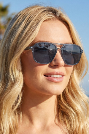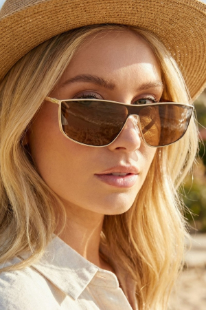 Oversized Square-Round Woven Brow Bar Sunglasses