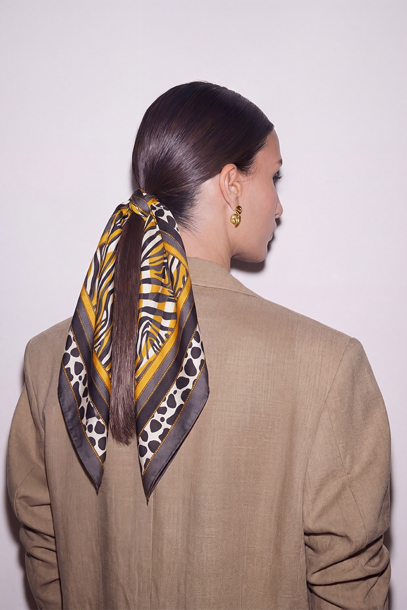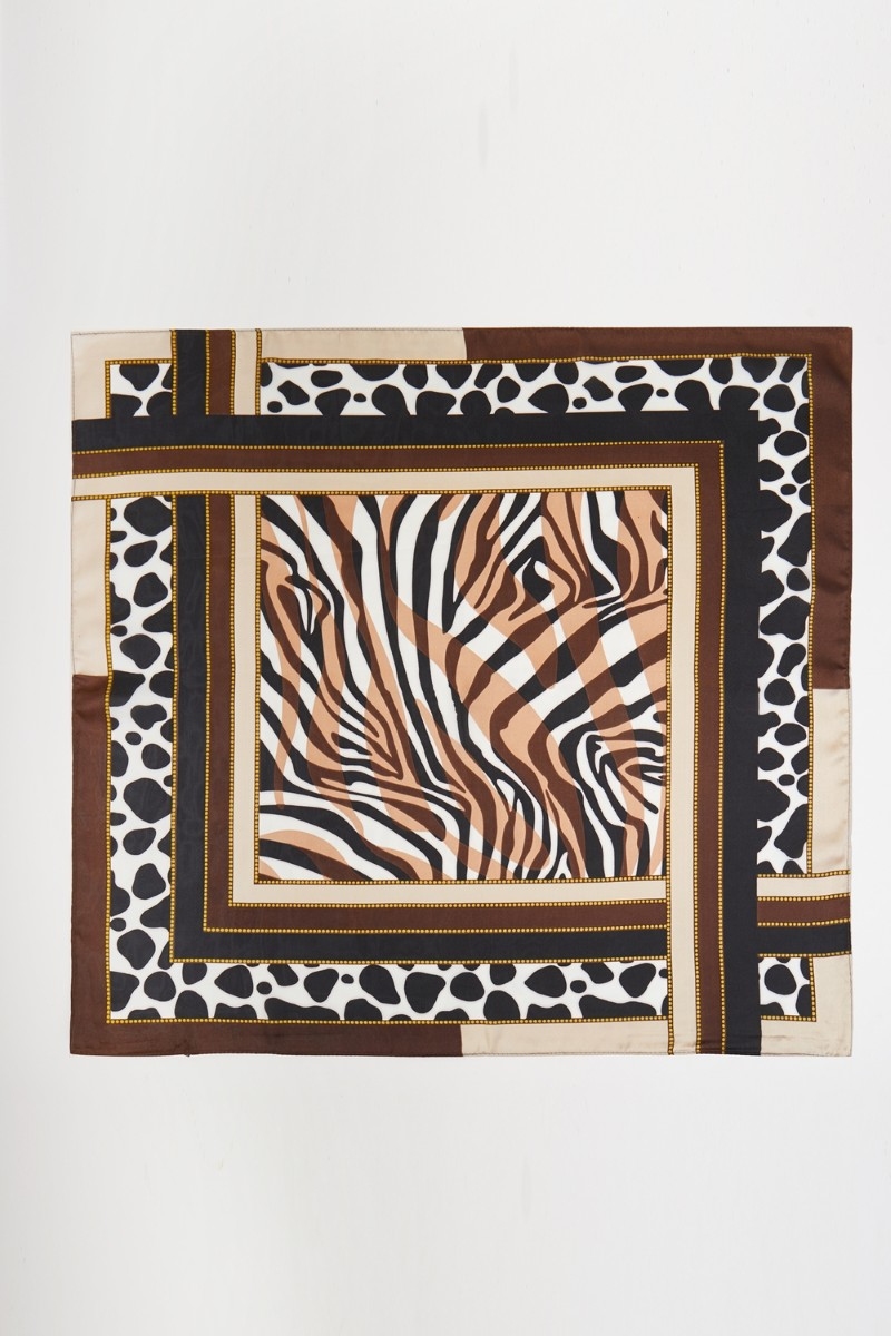 - This scarf features a fashionable abstract leopard zebra print bandana style. Savor the allure of detailed craftsmanship in this exquisite scarf.