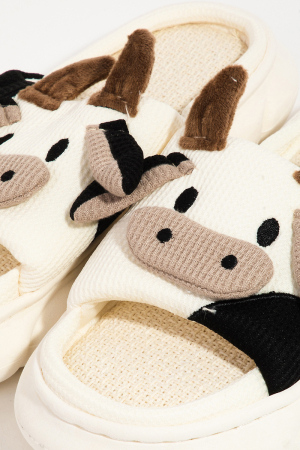 - This pair of slippers brings a unique cute cow slippers style. Experience the joy of accessorizing with this piece that effortlessly combines versatility and charm.