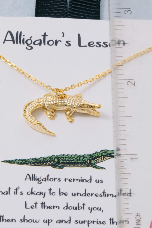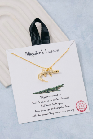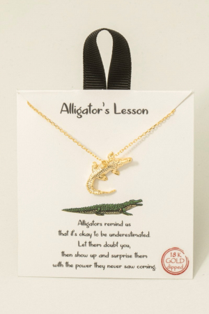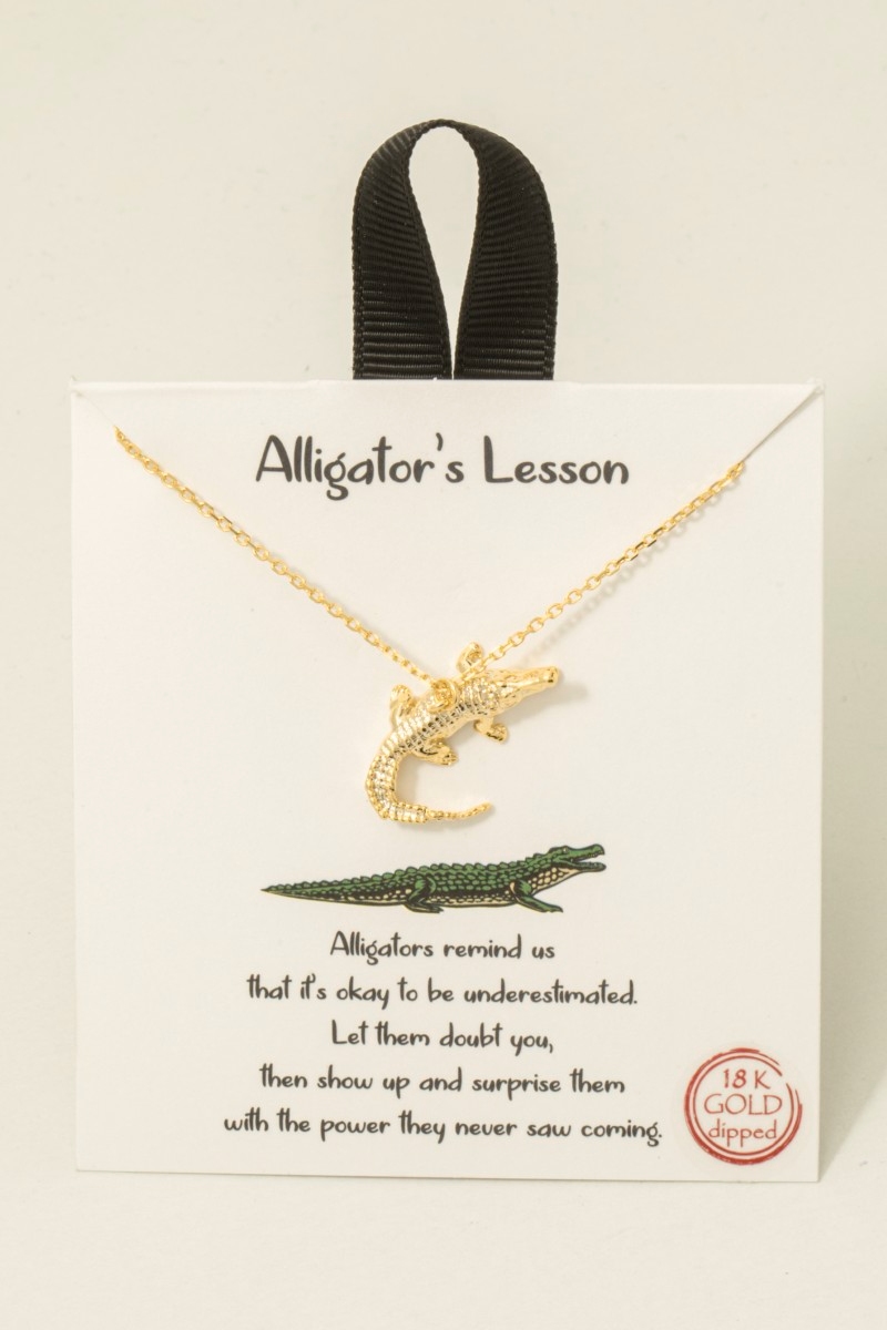 - This necklace brings a stunning gold dipped alligator pendant style. Experience a subtle blend of modernity and classic charm as this necklace effortlessly adorns your ensemble.