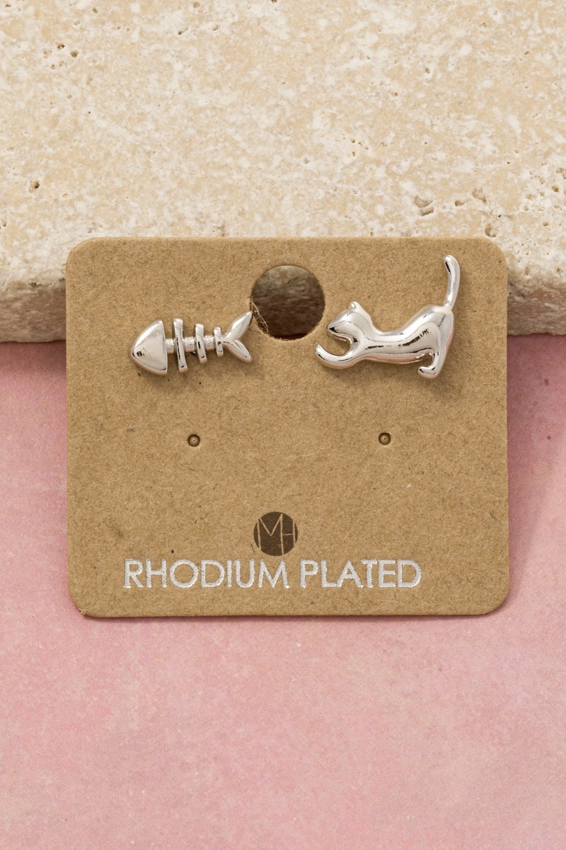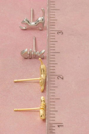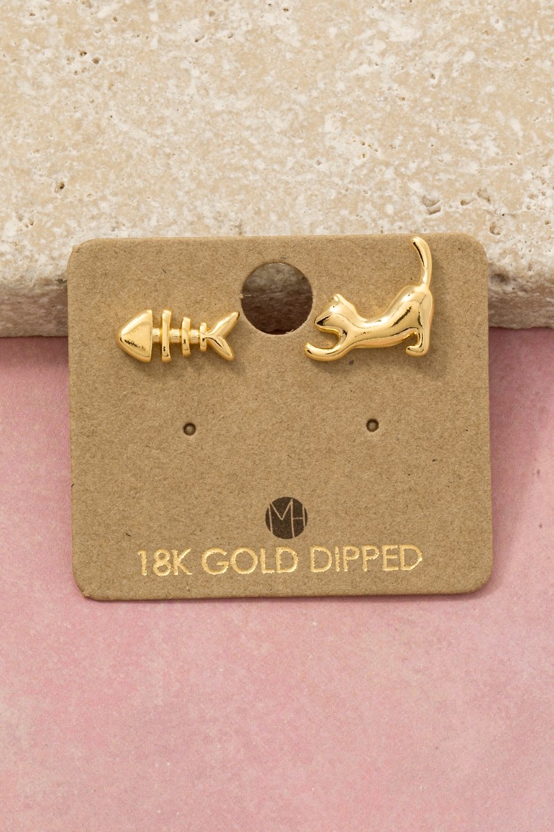 - This pair of stud earrings brings a luxurious gold dipped cat and fish style. Explore a refined sense of style with this pair of stud earrings, seamlessly elevating the chic factor of your look.