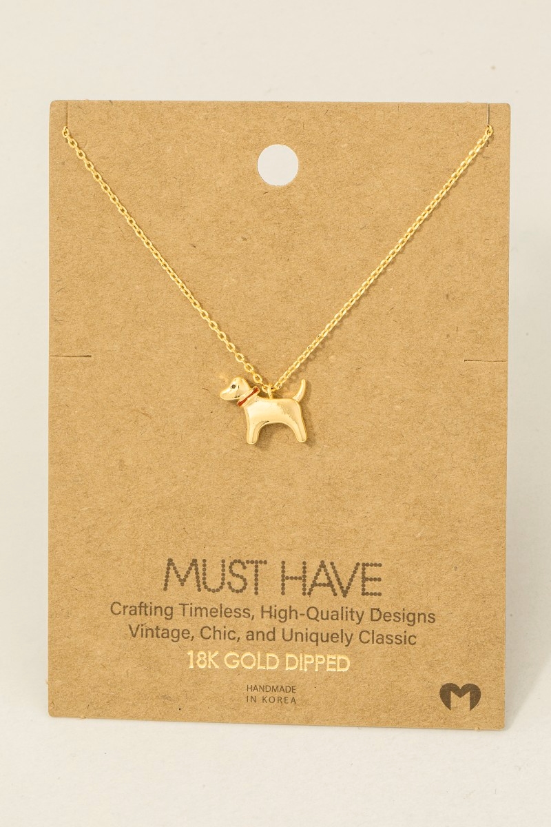 • This necklace displays a vibrant gold dipped dog pendant style. Step into a world of refined taste as this necklace effortlessly refines the details of your outfit.