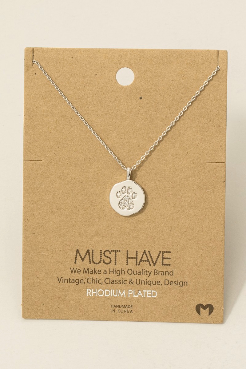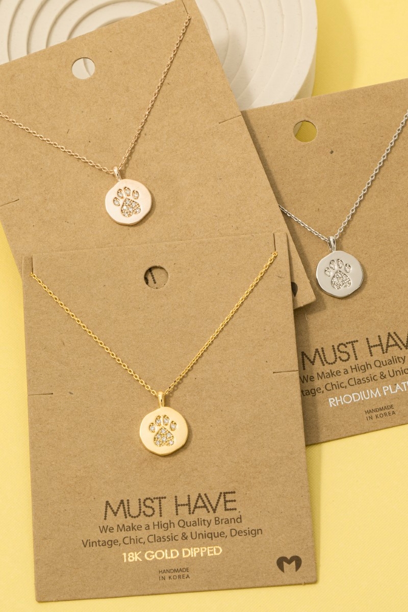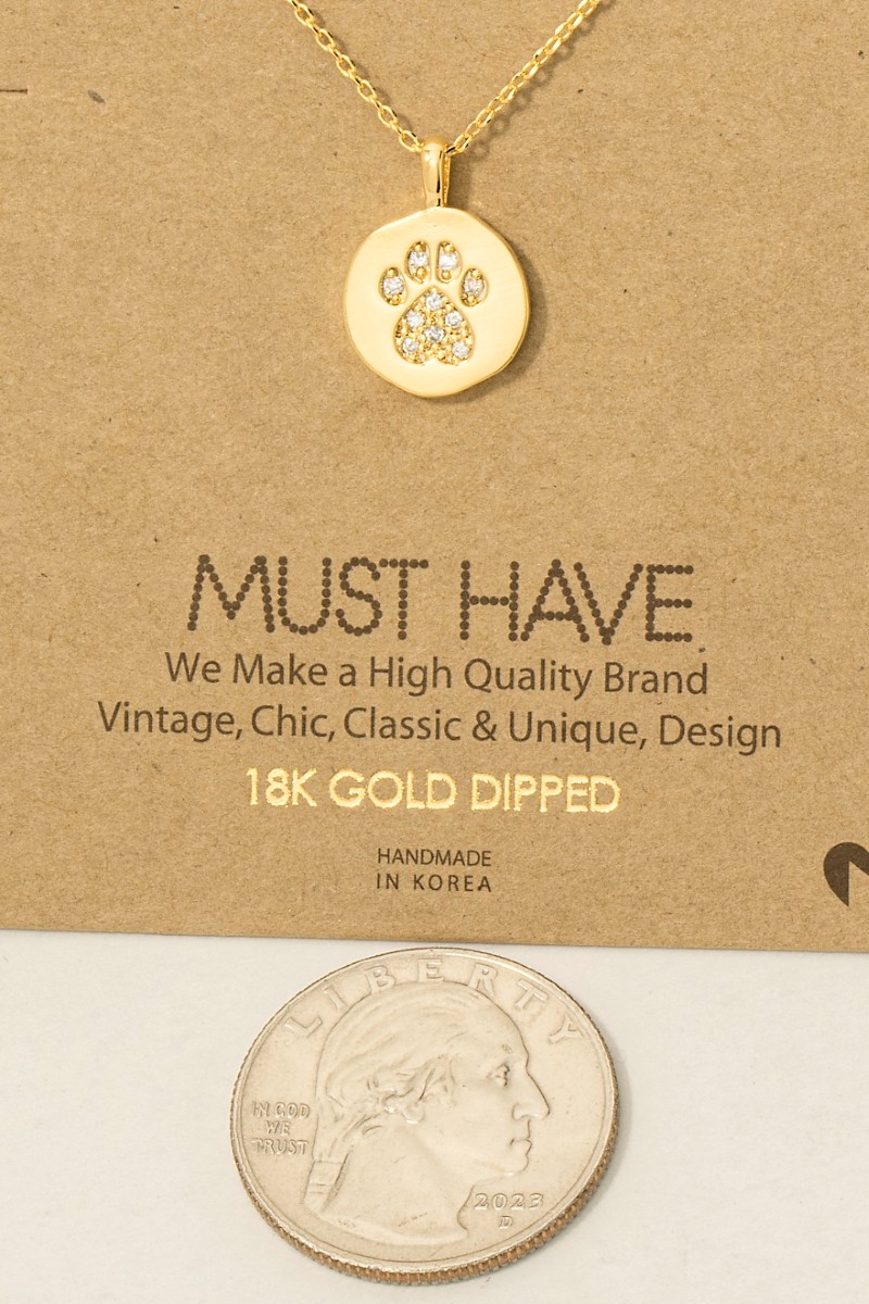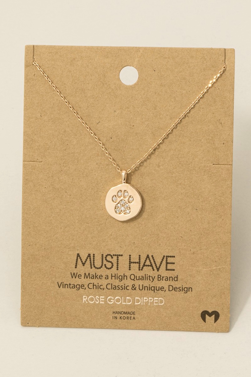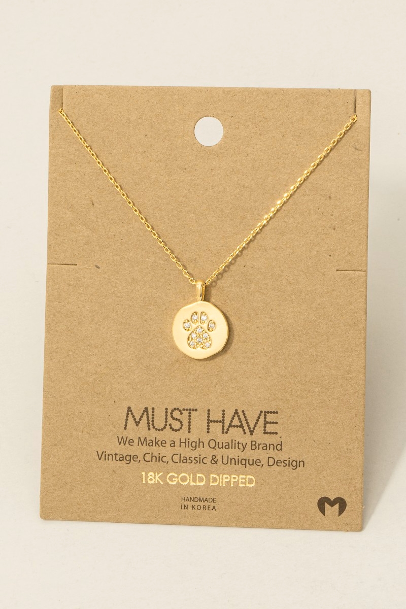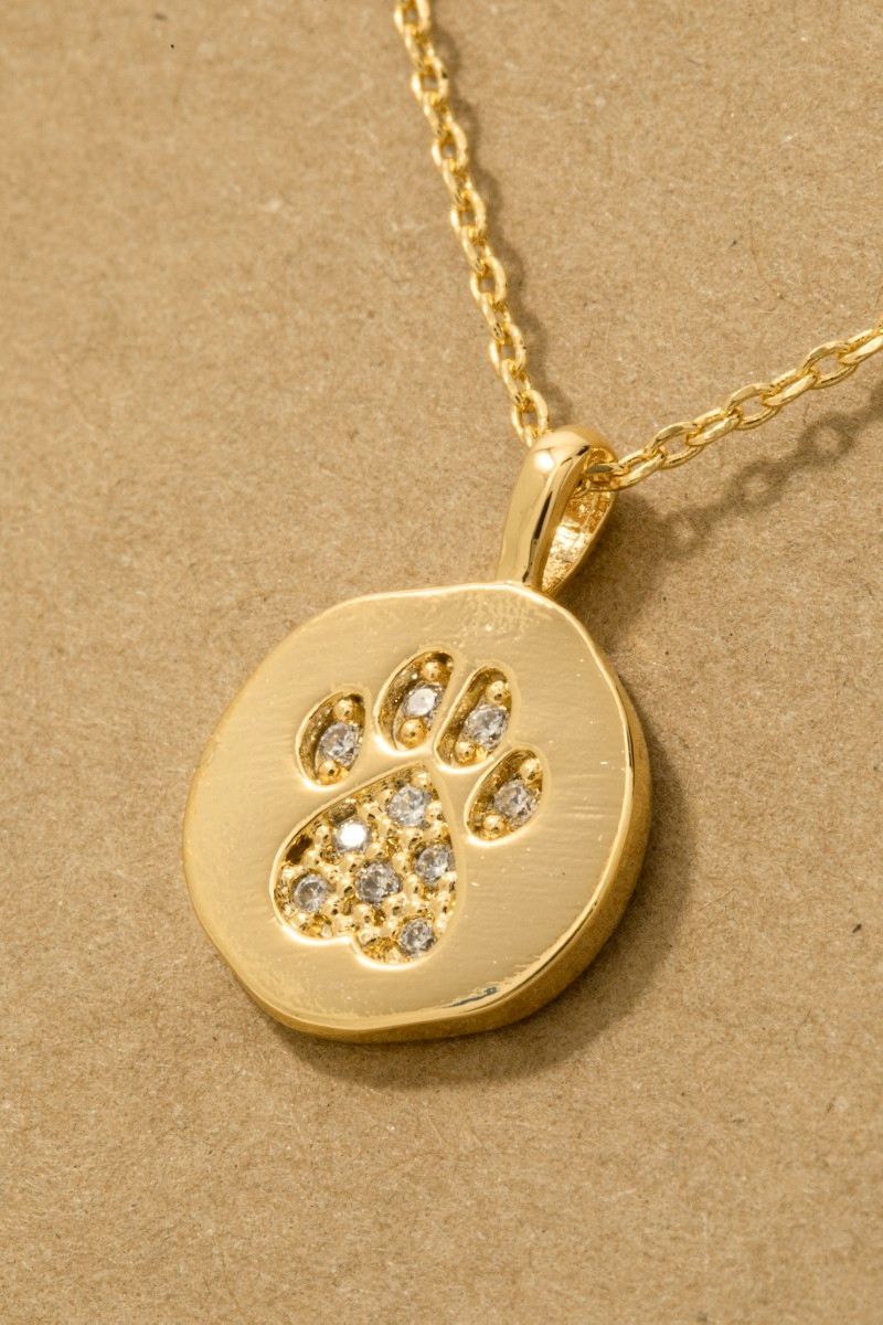 - This pendant necklace features a fashionable gold dipped pave dog paw style. Immerse yourself in the details of design, as this pendant necklace effortlessly becomes a conversation starter.