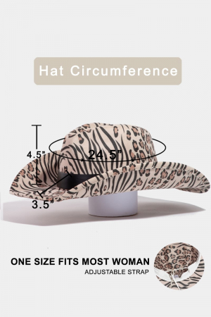 - This cowboy hat introduces a unique zebra and cheetah print style. Step into a world of refined taste as this cowboy hat effortlessly refines the details of your outfit.