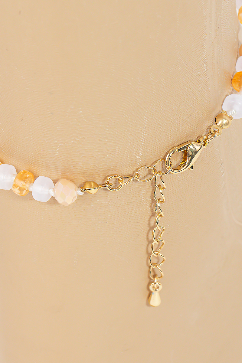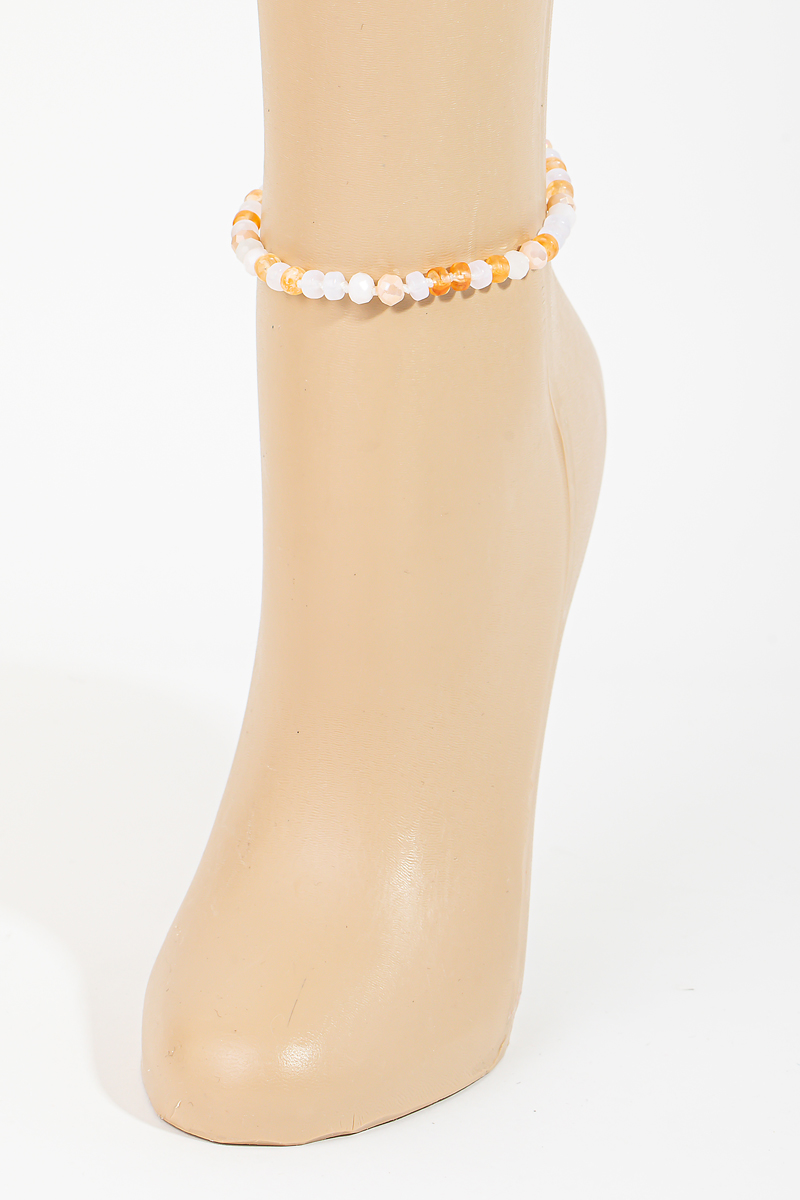 - This anklet displays a fashionable glass beaded style. Experience the joy of accessorizing with this piece that effortlessly combines versatility and charm.