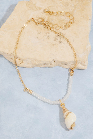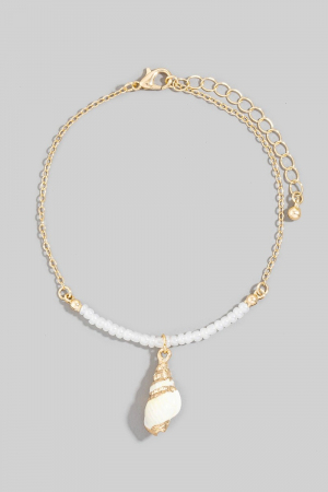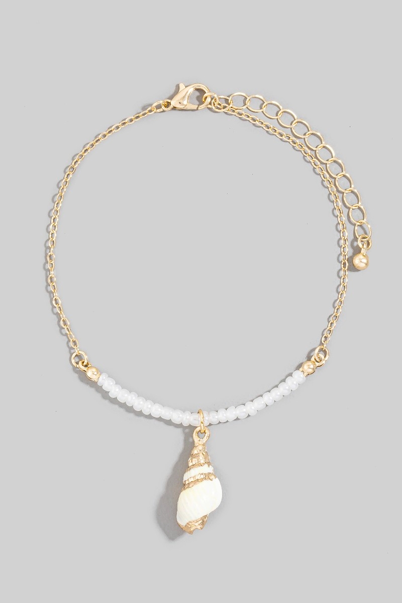 - This anklet introduces a stunning sea shell charm pearl beaded and chain style. Celebrate individuality with this anklet that effortlessly expresses your unique sense of style.