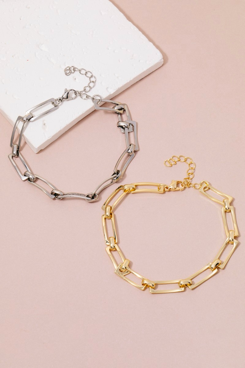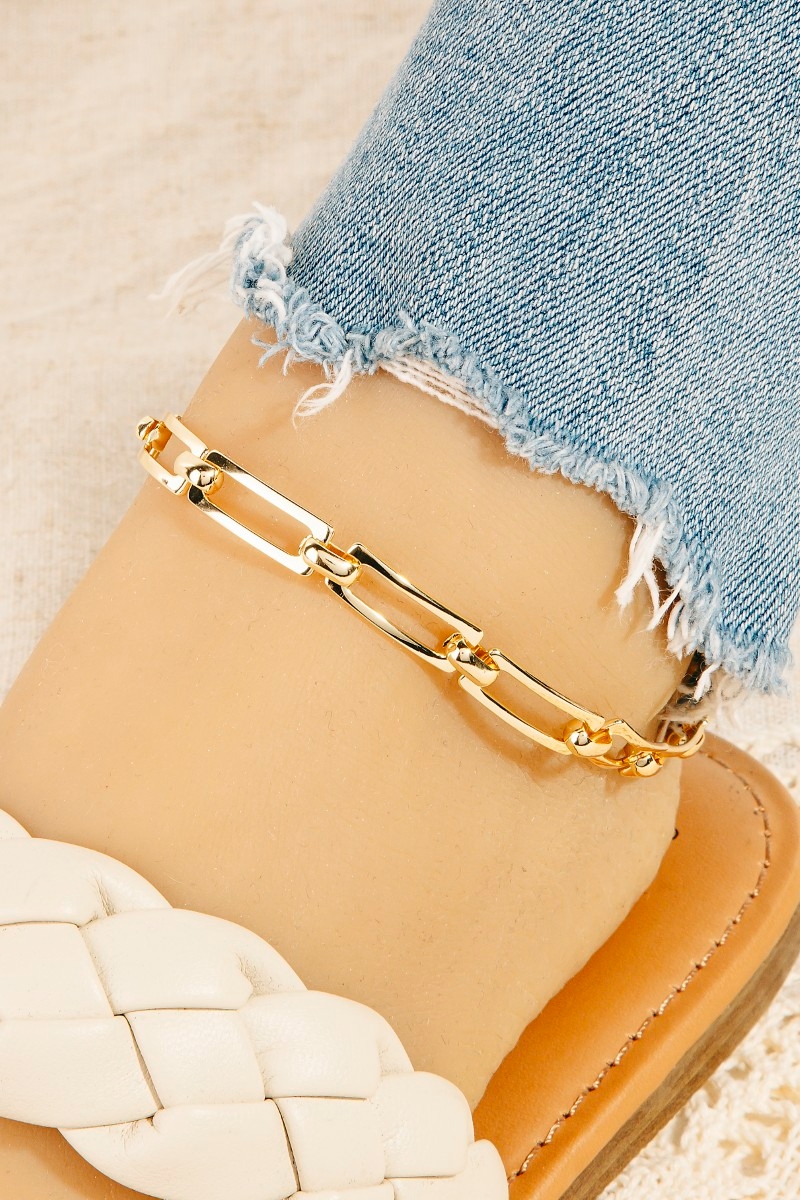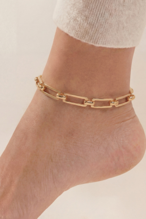 - This anklet displays a fashionable stainless steel curved rectangle chain style. Elevate your ensemble with this chic, timeless anklet.