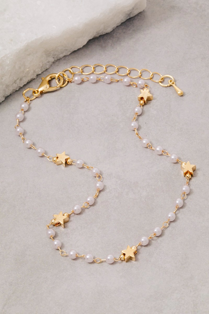 • This anklet brings a luxurious star and pearls chain style. Experience refined sophistication with this understated yet stylish piece.